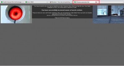 Teraz Yarold wyszed艂 z pomys艂em aby przeprowadzi膰 test nazwany HAT - the Human Awarness Test (testowanie ludzkiej 艣wiadomo艣ci). Poniewa偶 nie ma technicznego rozwi膮zania aby sprawdzi膰 czy klikamy przyciski na stronach "link贸w akcji", Yarold wymy艣li艂 stron臋 przypominaj膮c膮 ma艂膮 gr臋,l w kt贸rej walczymy z robotami. Nale偶y napisa膰 co艣 (cokolwiek) w ramce tekstowej i klikn膮膰 przycisk. Taka strona b臋dzie si臋 pojawia膰 co jaki艣 czas po艣r贸d otwartych przez Ciebie link贸w. Je艣li zauwa偶ysz t膮 stron臋 i wype艂nisz polecenie, czynnik Care w Twoim profilu wzro艣nie. Je艣li nie zauwa偶ysz strony HAT i zamkniesz j膮, wtedy czynnik Care spadnie.